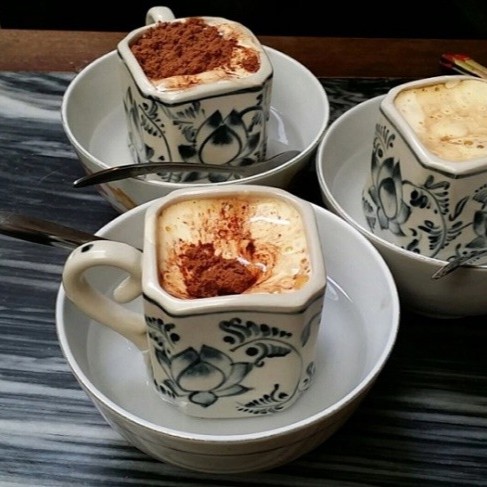 Egg coffee is one of the most special and well-known coffee variations that has won the hearts of not only Vietnamese people but also international travellers. Vietnamese egg coffee will make you drool with its strong bitter taste of natural coffee and the frothy texture of egg yolk mixture.